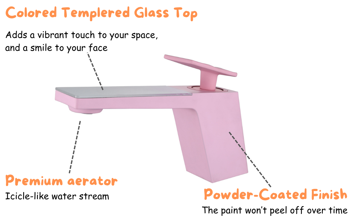 Rainly Splash-Resistant Pink Faucet with Tempered Glass Top